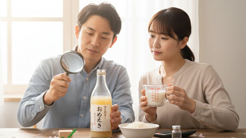 - 飲む際は、カロリーや糖質の過剰摂取を防ぐため、1日コップ1杯程度の適量を守ることが大切で、原材料に「米」と「米麹」だけが使われているものを選ぶのがおすすめです。